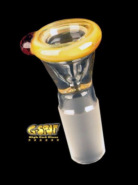 G-Spot konischer Farbglasflutschkopf gelb/weiß (NS 18.8)